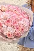Надзвичайно ніжний букет з гортензією та надзвичайно ароматною трояндою Пінк Охарою